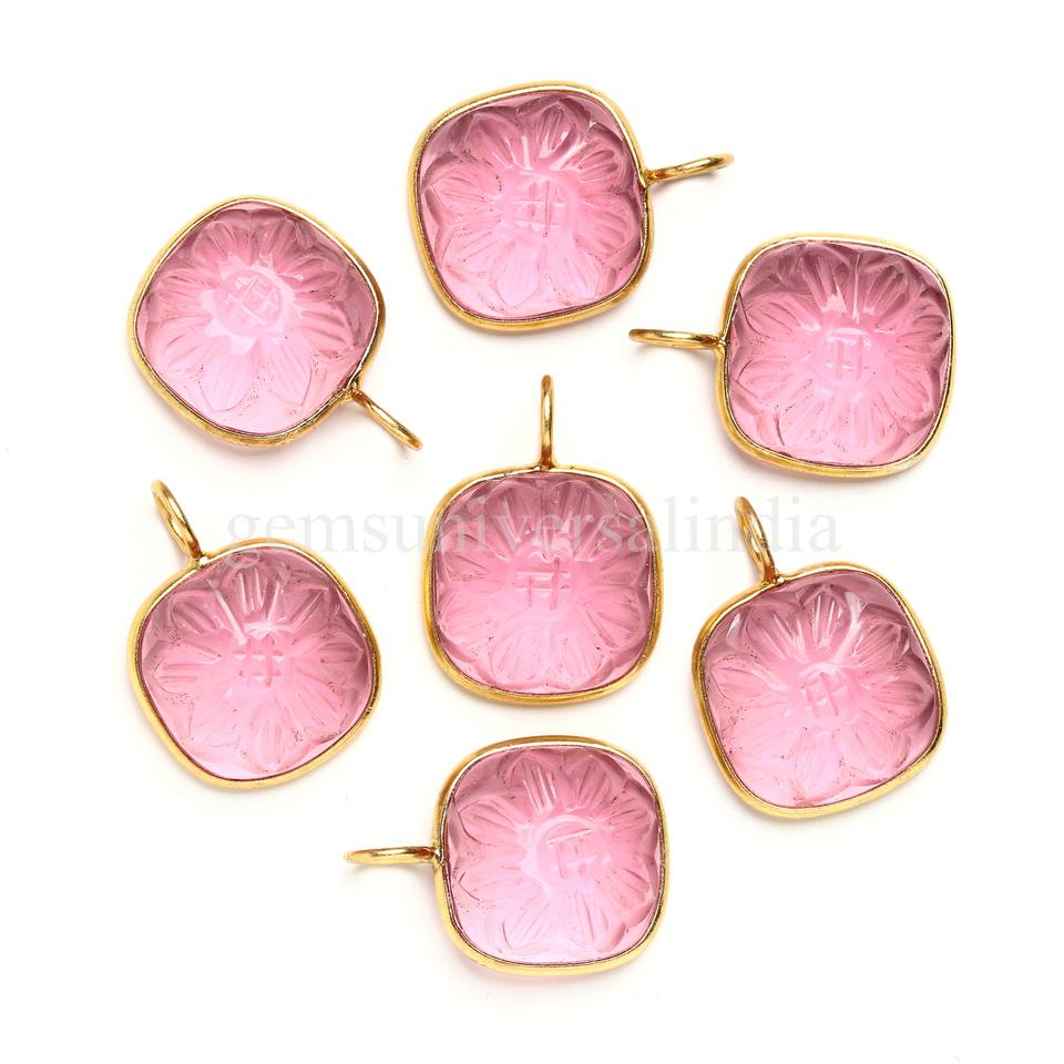 Product name:Pink Tourmaline Quartz Cushion Shape Flower Carved Gemstone Pendant