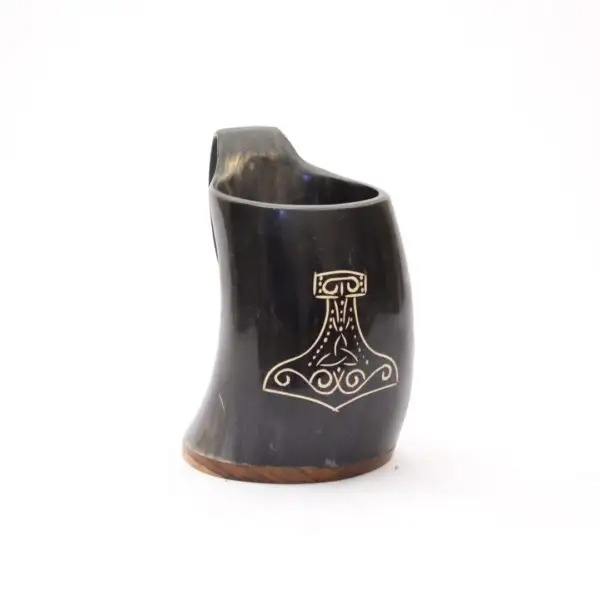Natural Polished Horn Mug Rustic Handmade Drinkware Classic Cup for Daily Beverage Use and Kitchen Decor Display
