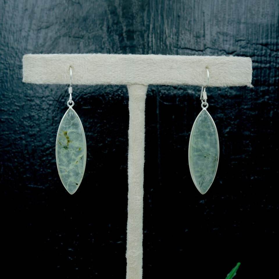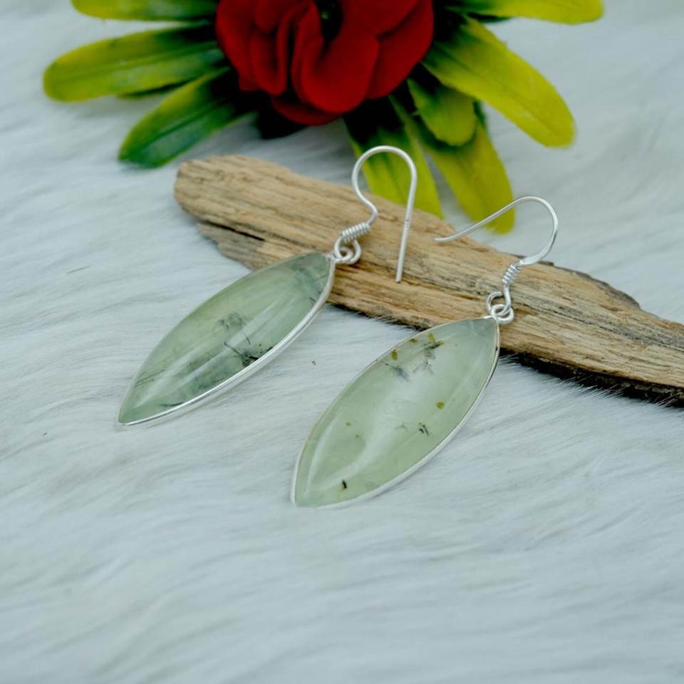 Natural Prehnite 925 Sterling Silver Earrings Handmade Fashion Jewelry for Girls and Women Gift