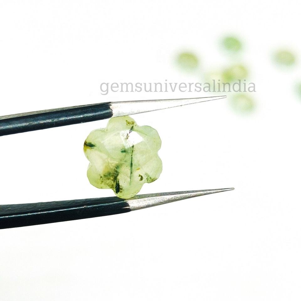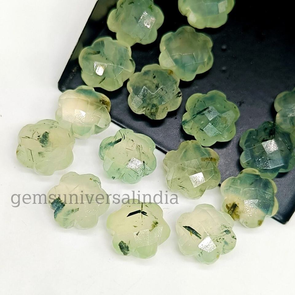 Product name:Natural Prehnite Flower Shape Carved Faceted Gemstone