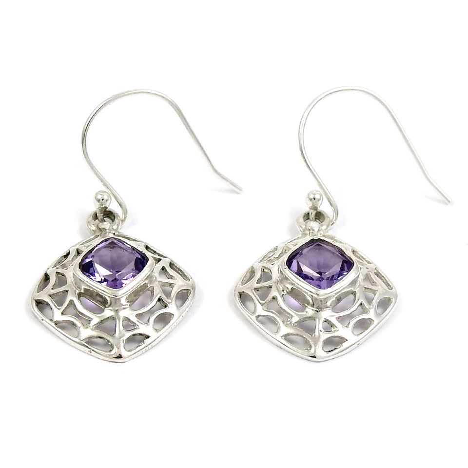 Natural Purple Amethyst Gemstone 925 Sterling Silver Cushion Shape Dangle Earrings for Woman Girls February Birthstone Jewelry