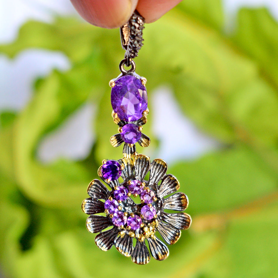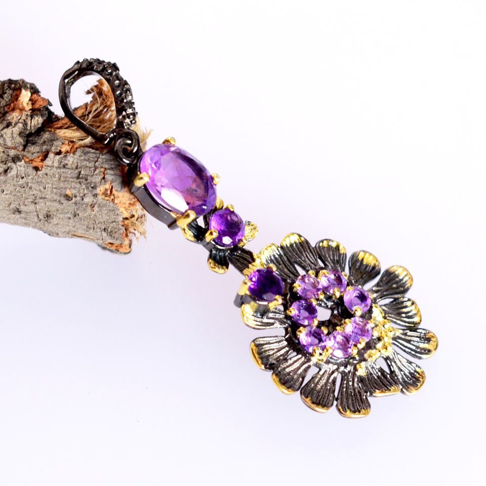 Natural Purple Amethyst Gemstone Pendant 925 Sterling Silver Fine Jewelry From Jaipur India