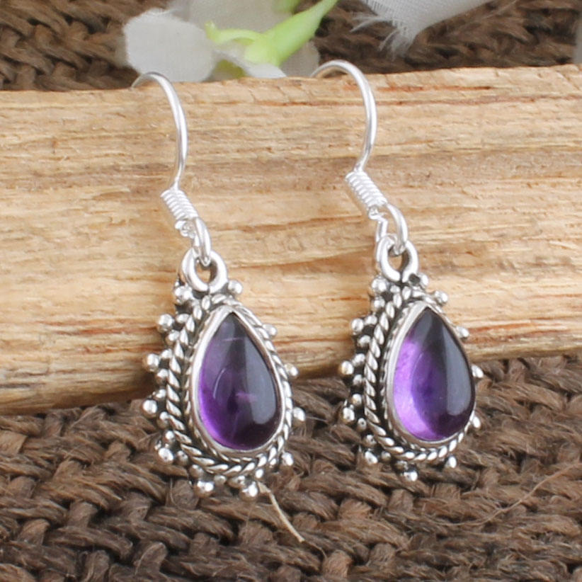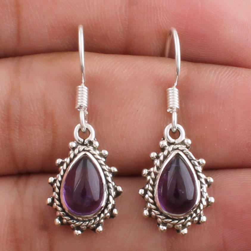Natural Purple Amethyst Sterling Silver Drop Earrings AAA Grade Luxury February Birthstone Fine Jewelry Women Bridal Wedding