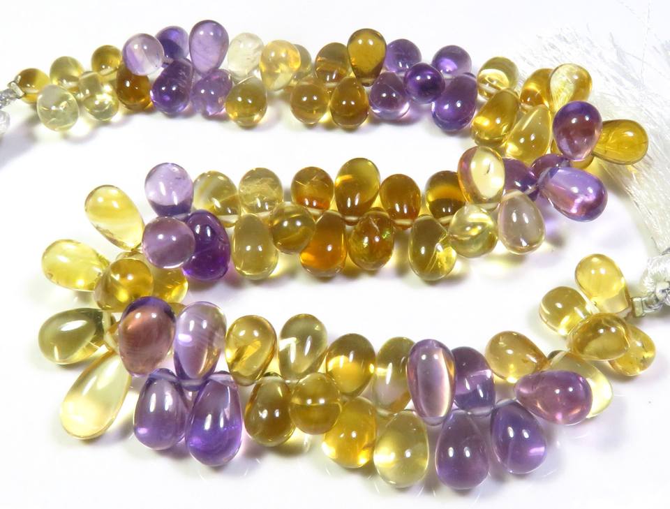 Natural Purple Amethyst Teardrop Beads 7-11mm 9"Strand Yellow Citrine Loose Gemstones Beads