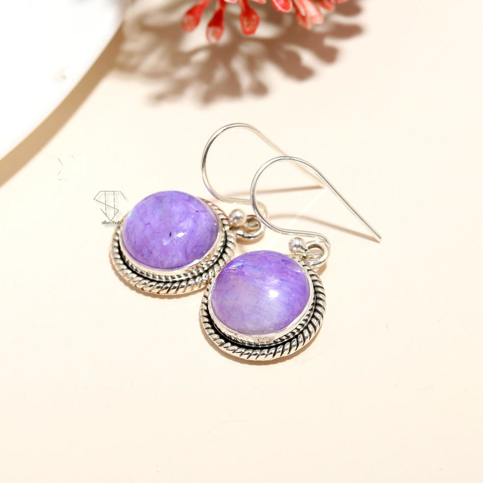 925 Sterling Silver Natural Purple Moonstone Gemstone Earrings