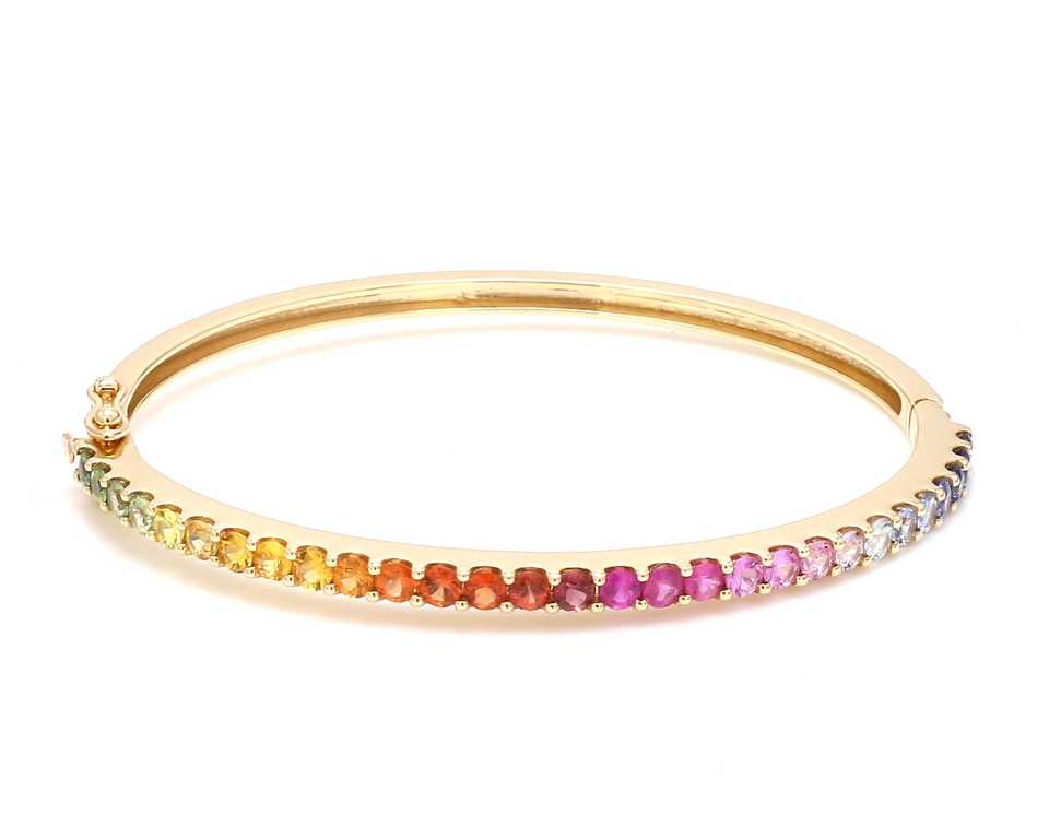 Natural Rainbow Gemstone Tennis Bracelets Paved Stone Luxury 14k Pure Gold Bangle Bracelets Trendy Women Accessories Wholesale