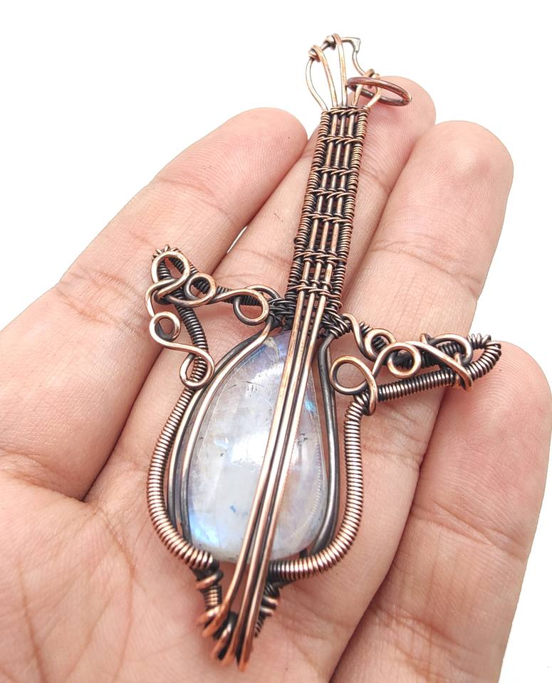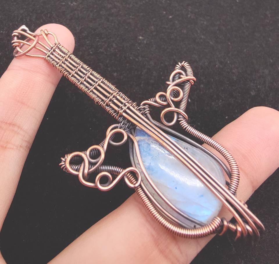 Rainbow Moon Gemstone Copper Wire pendant