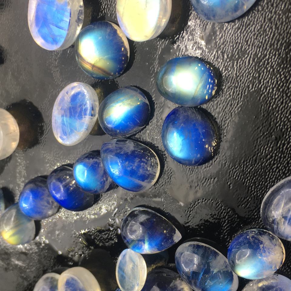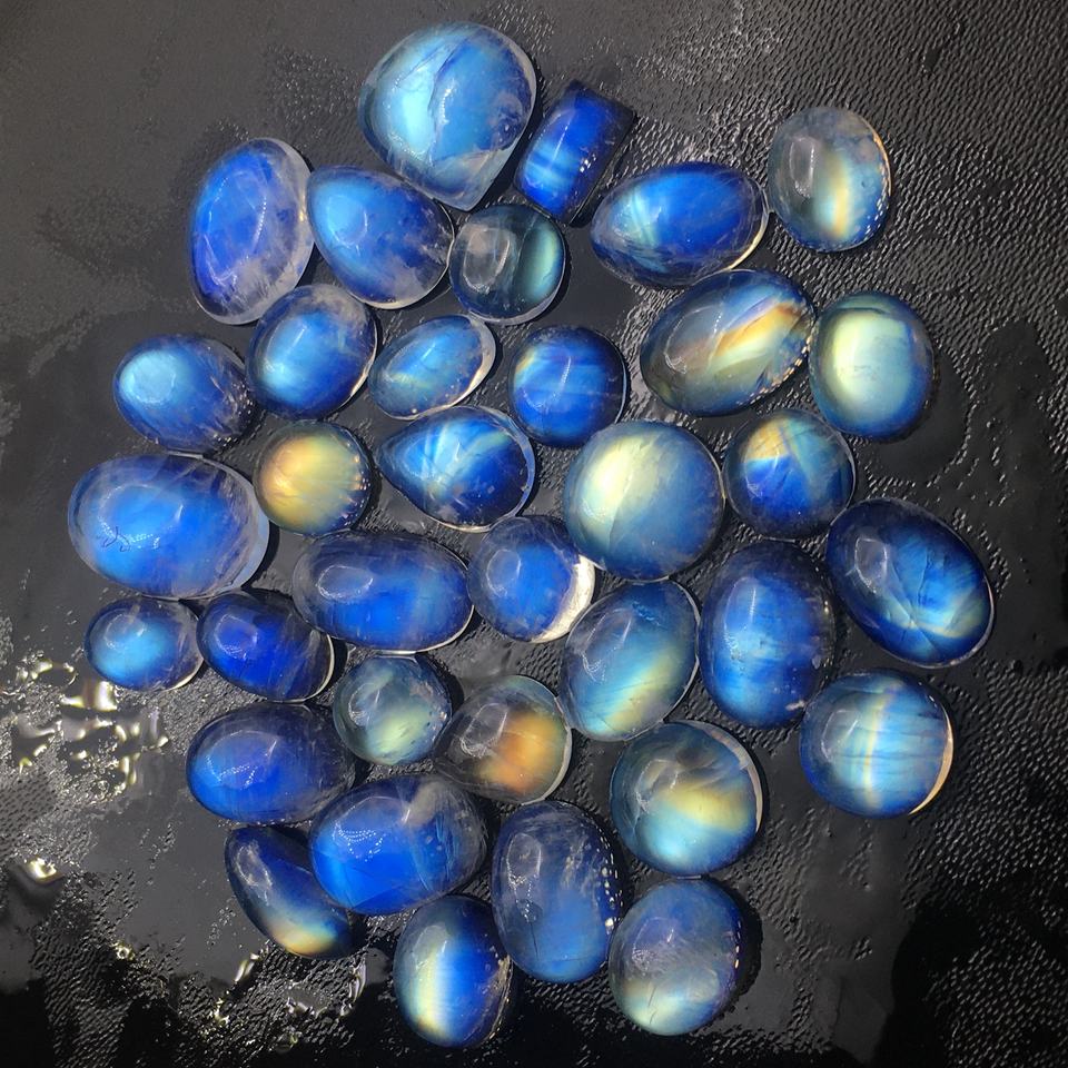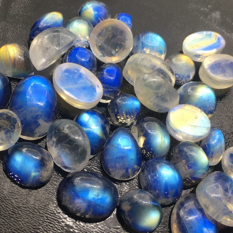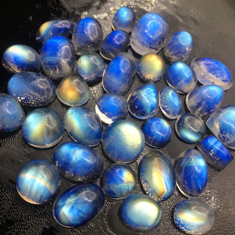 Natural Rainbow Moonstone Cabochon Full Flashy Blue Fire Plain Gemstone Amazing Quality Polished Jewelry Making Loose Gemstones