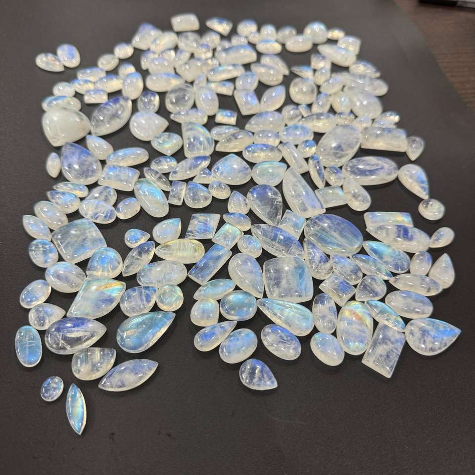 Natural Rainbow Moonstone Cabochons Blue Flash Full Fire Free Size Mixed Shape Moonstone Cabochons