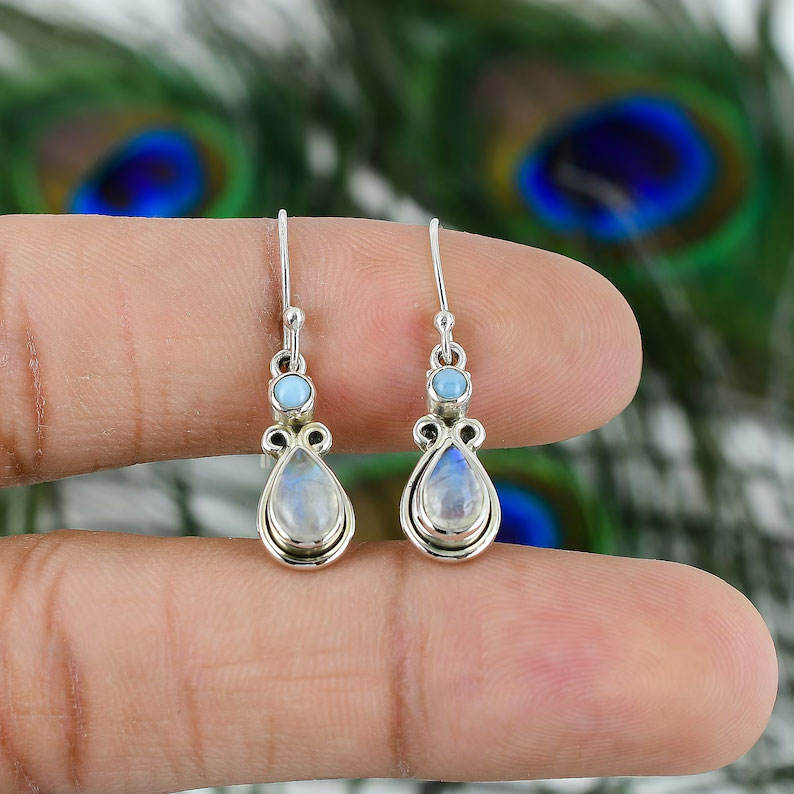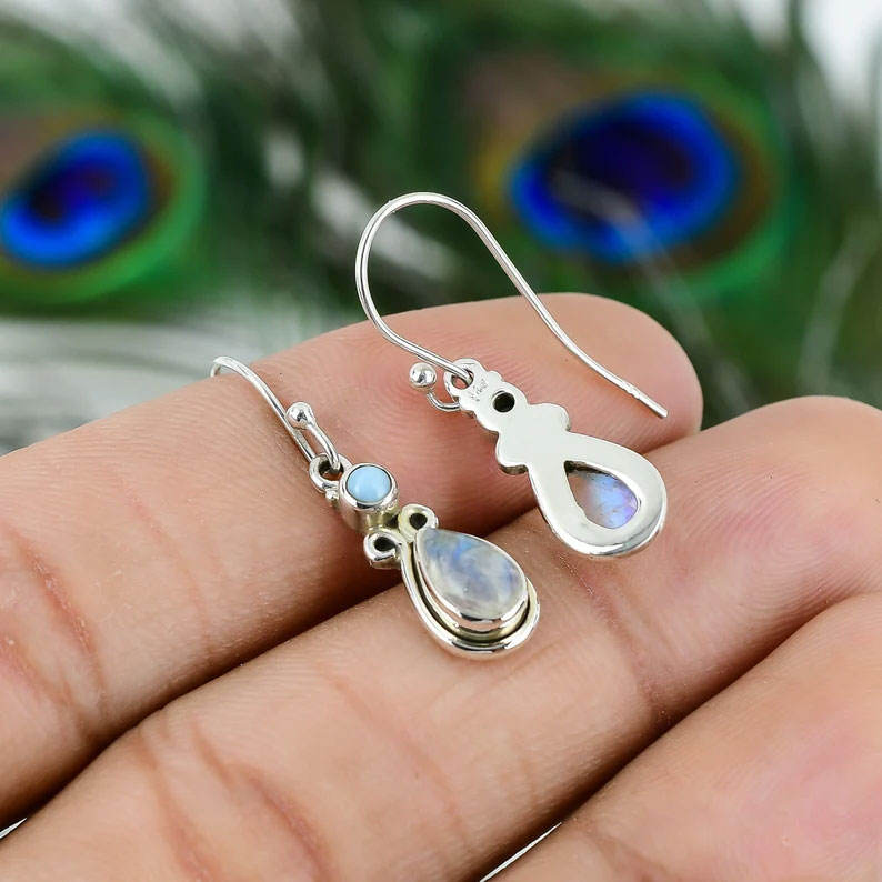 Natural Rainbow Moonstone Drop Earrings Silver Plated Marquise Shape Handmade Jewelry for Women Wholesale