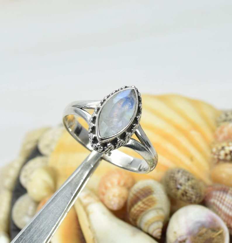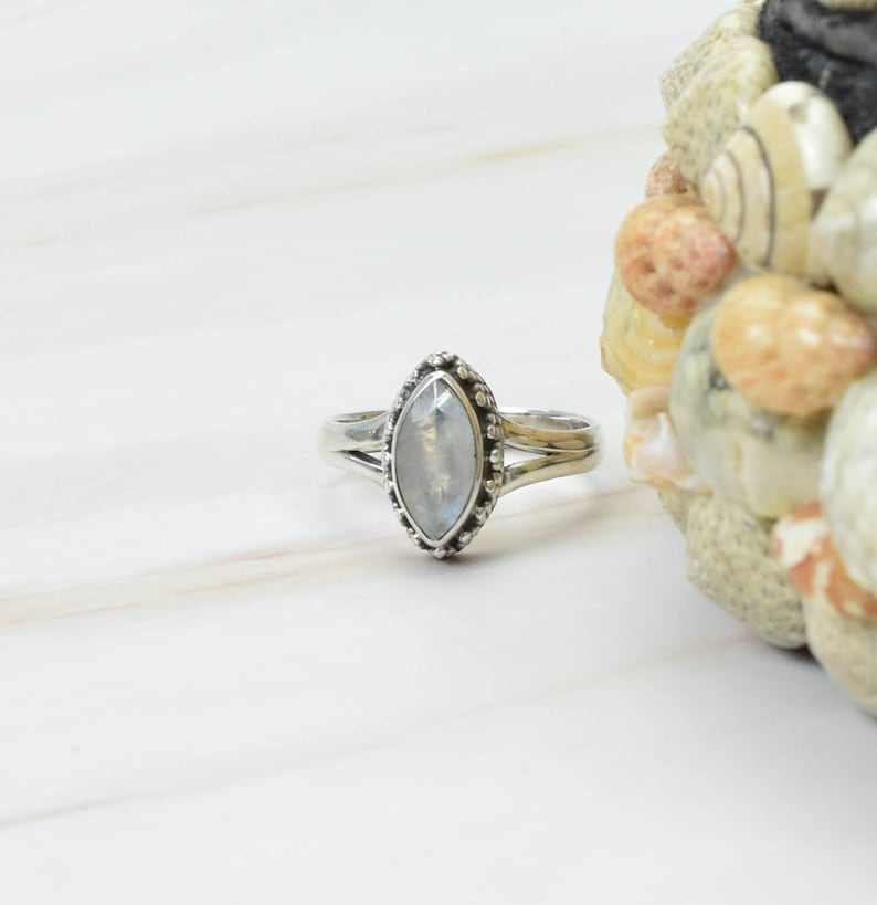 Natural Rainbow Moonstone Faceted Marquise Shape Carved Gemstone Ring 925 Sterling Silver Party Wear Fashion Rings Women Jewelry
