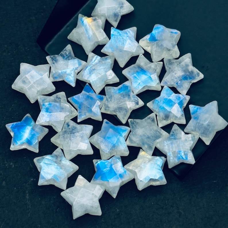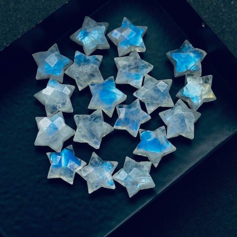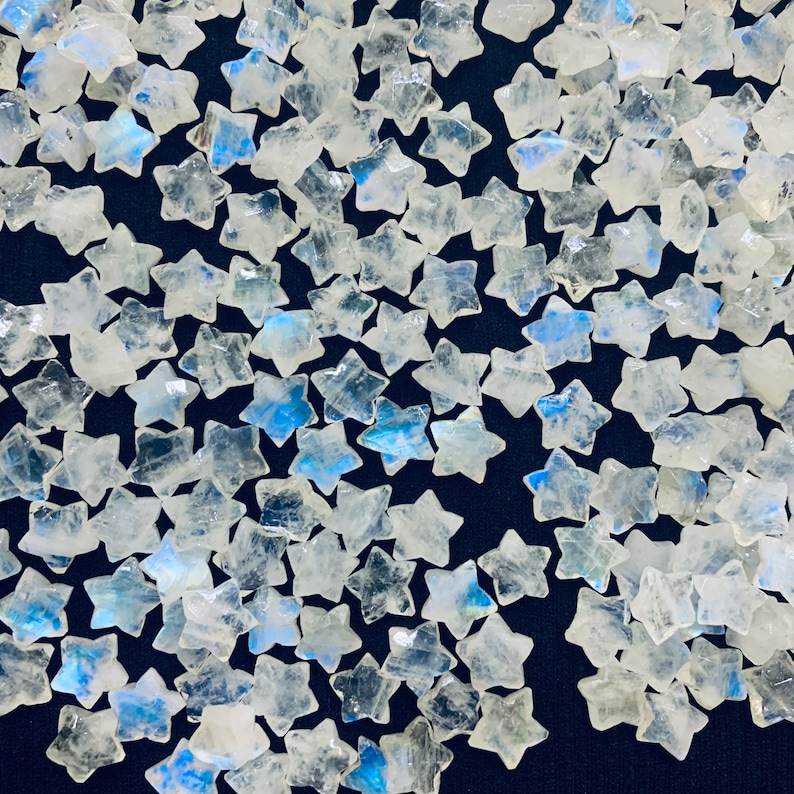 Rainbow Moonstone Star Carved Gemstone