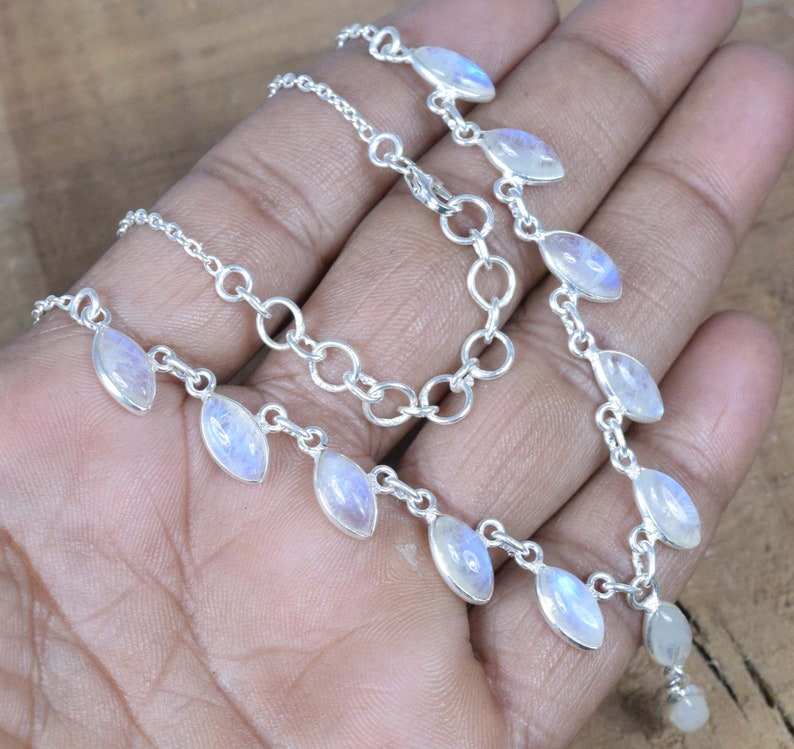 Natural Rainbow Moonstone Gemstone 925 Sterling Silver Handmade Designer Classy Fine Jewelry Necklace For Women Customized