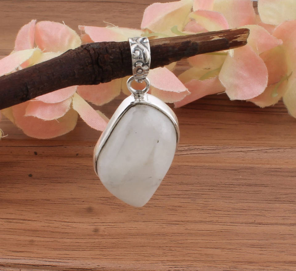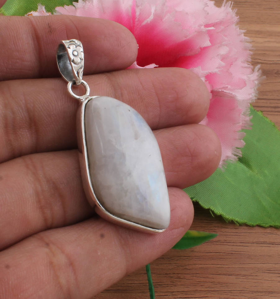 Natural Rainbow Moonstone Pendant 925 Sterling Silver Platinum Plated Vintage Bezel Setting Wholesale Blue Flash Gemstone