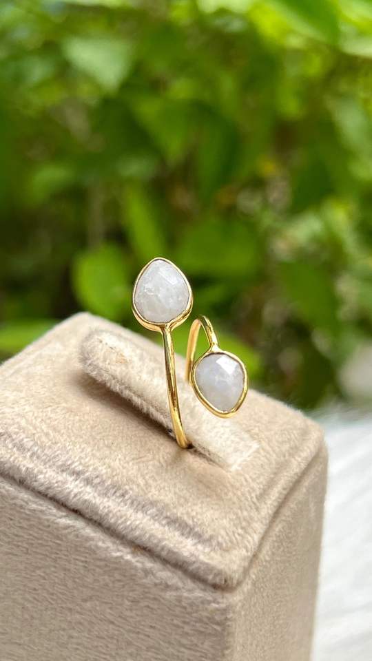 Natural Rainbow Moonstone Ring Handmade Adjustable Brass Statement Gemstone Wedding Ring 925 Sterling Silver 14K Gold Gift