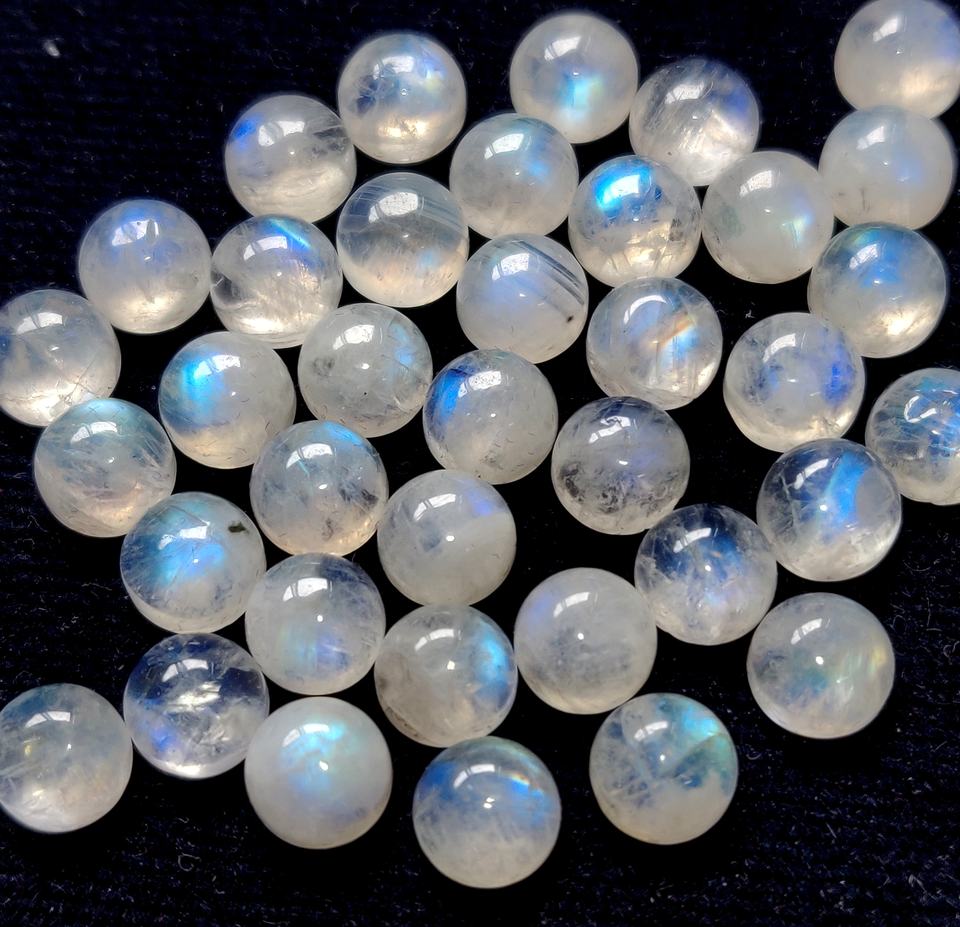 Natural Rainbow Moonstone Round 6mm to Cabochon Flat Back - Loose Rainbow Moonstone Blue Flashy Top Quality Gemstone