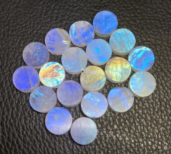 Natural Rainbow Moonstone Round Both Side Flat Cabochon Gemstone Blue Fiery Gemstone for Jewelry Making Like Bracelet Necklace