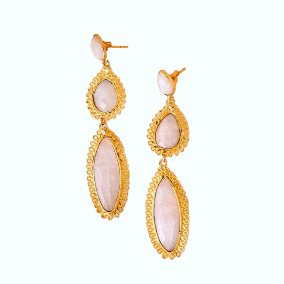 Natural Rainbow Moonstone Faceted Gemstone Dangle Earrings