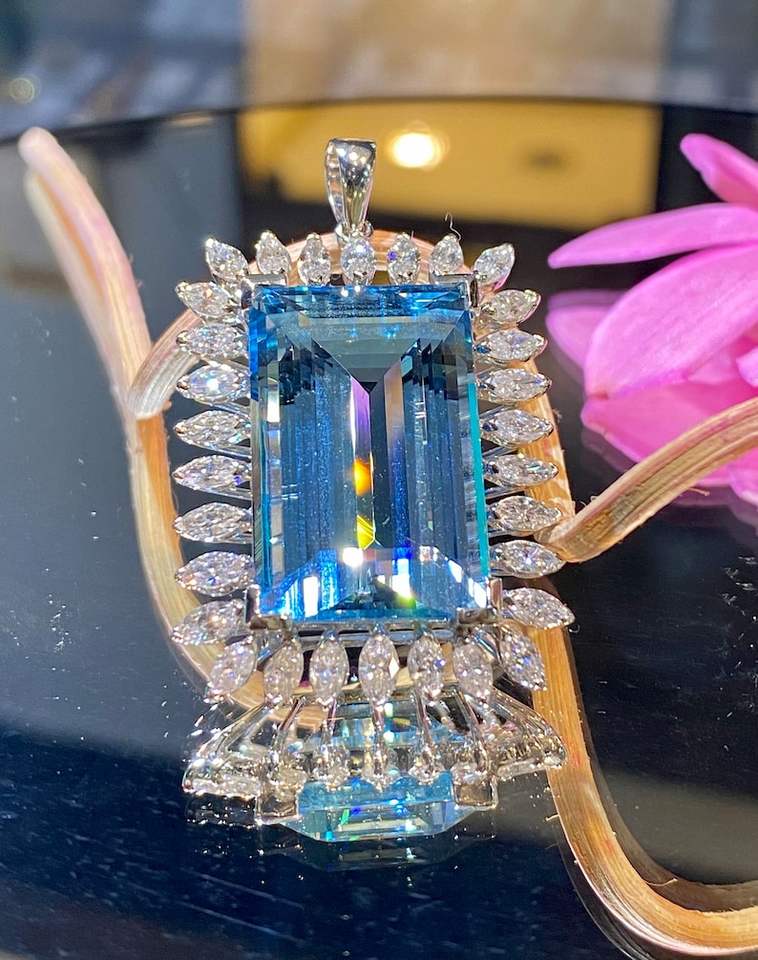 Keyword:Natural Rare Clean Aquamarine Glowing Pendant Polished Stone Jewelry
