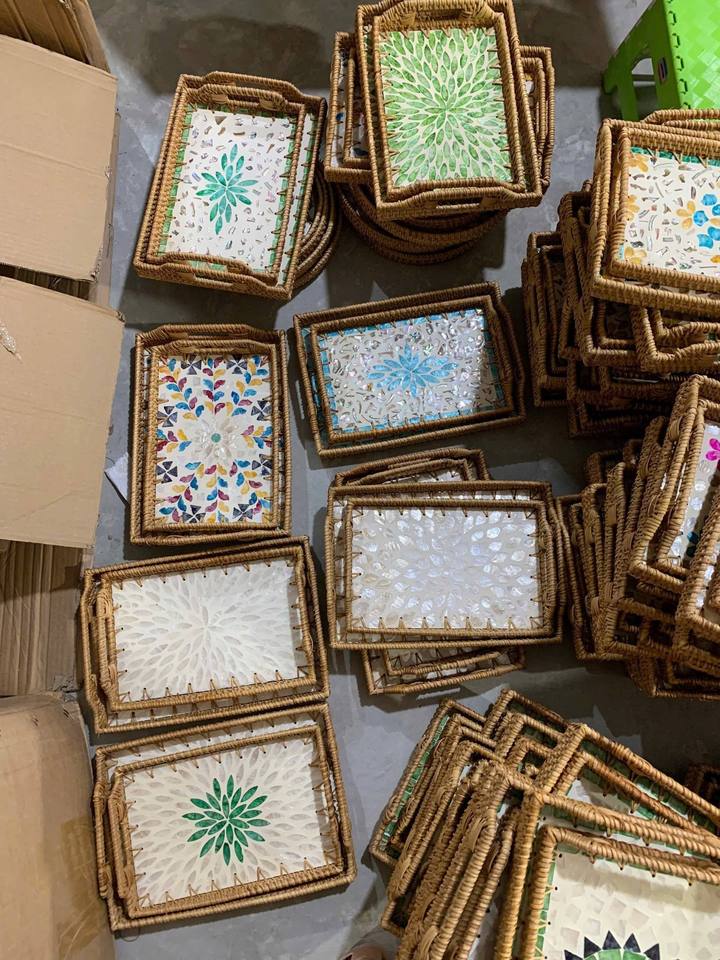 Natural Rattan Bamboo Tray With Pearl Inlay For Candy Fruit And Table Decoration Vietnam