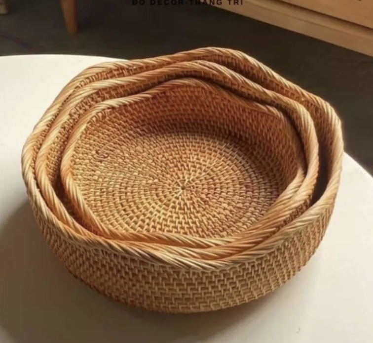 Natural Rattan Basket Handmade Wicker Tray Decorative Bamboo Tray for Food Serving Storage Coffee Bread Fruits Display