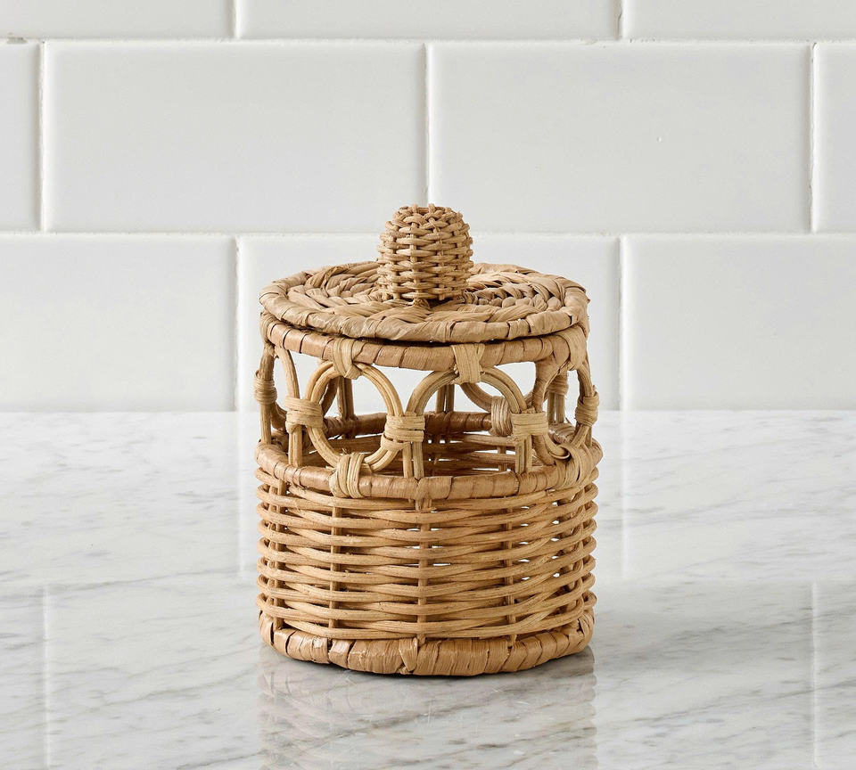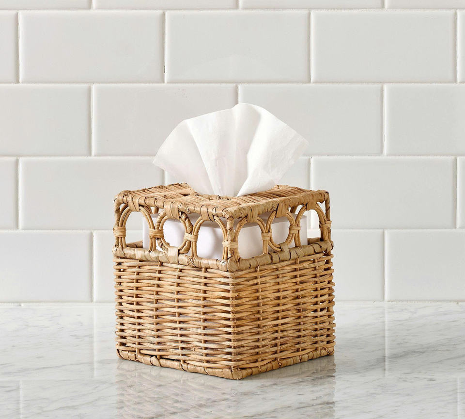 Natural Rattan Bathroom Accessory Set, Handwoven Wicker Tissue Box, Soap Dispenser and Tray for Hotel & Spa Decor