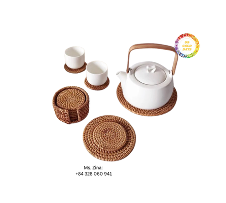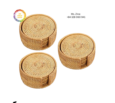 Handmade Round Eco-Friendly Table Decoration Natural Rattan Coasters Set with Holder for Home Kitchen Cafe Use