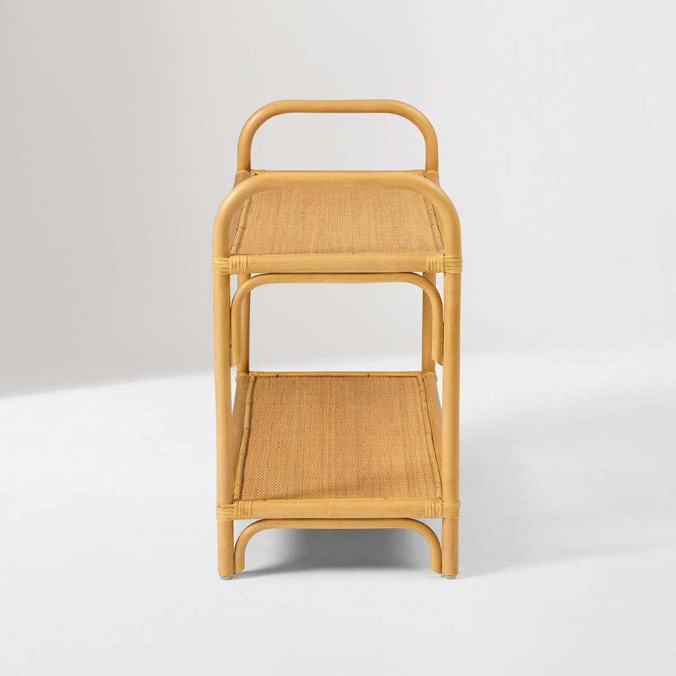 Natural Rattan Console Table - Handmade 2-Tier Boho-Chic Woven Shelf & Versatile UtilityTable