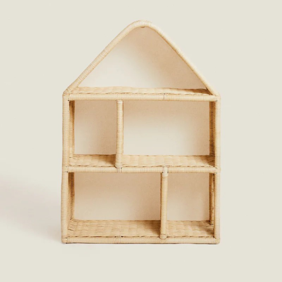 Natural Rattan Kids House Bookcase Hand Woven Wicker House for Baby and Kid