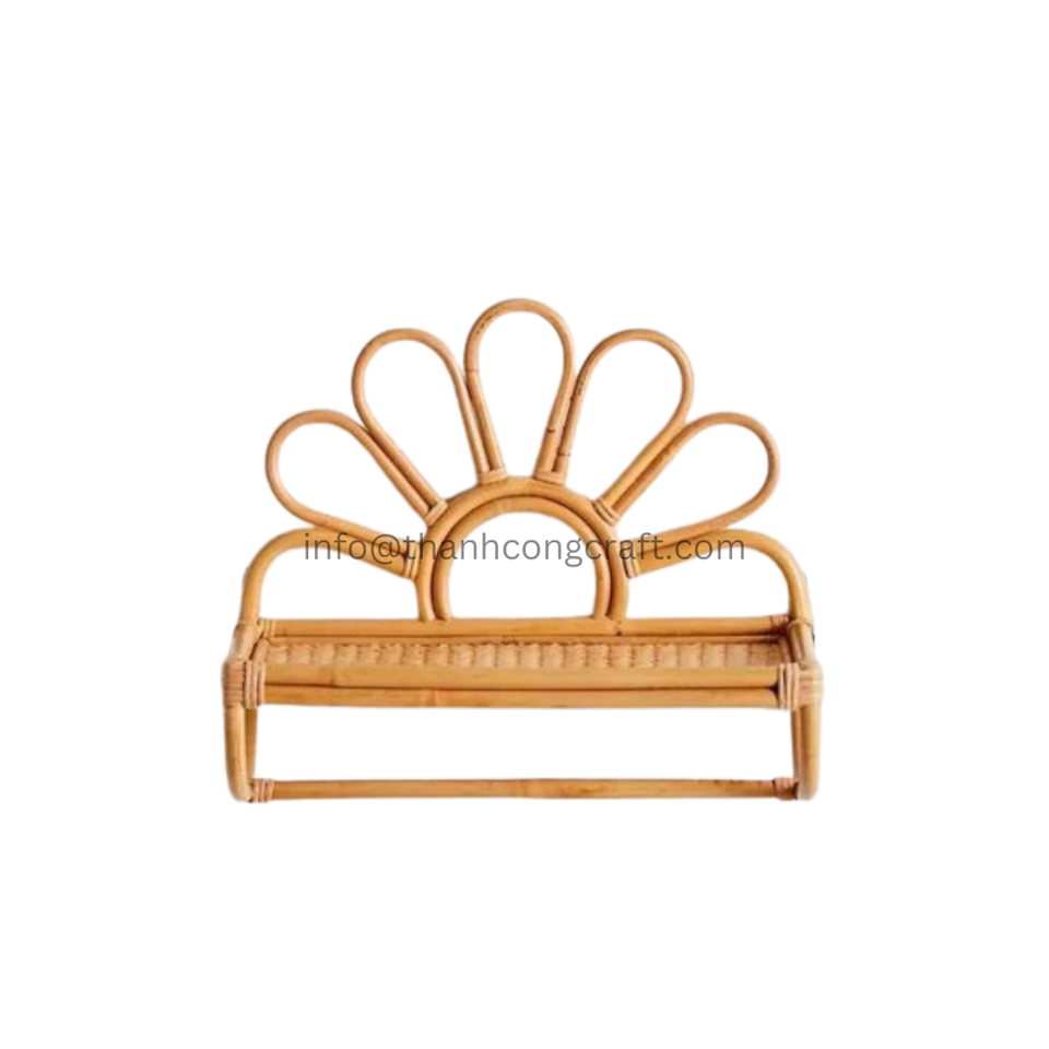 Natural Rattan Wall Shelf Floating Hooking Shelf Decorative Shelves Hanging Basket for Kitchen Boho Nursery Wall Decor