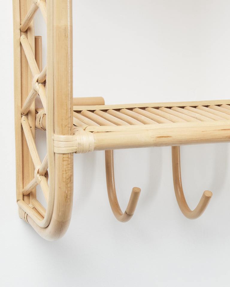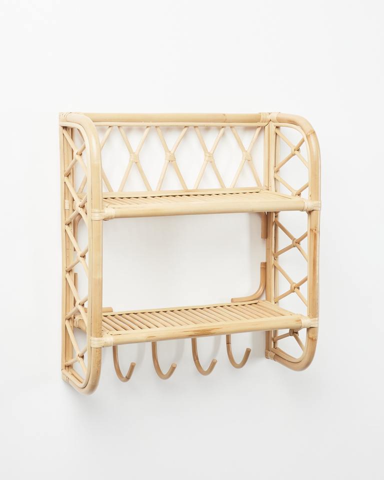 Natural Rattan Wall Shelf with Hooks:Size: D7,1 x W16,5 x H20,1 inch