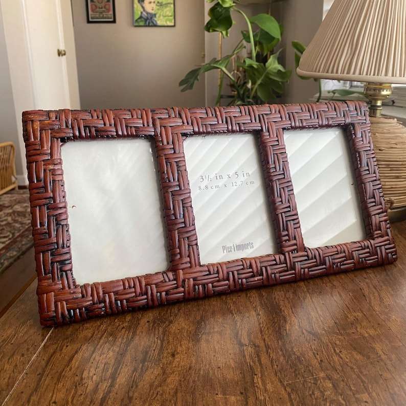 Natural Rattan Weaving Wall Scalloped Photo Frame Mirror Decorations for Home Made in Vietnam Vintage Style