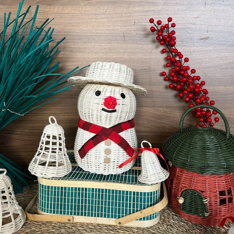 Natural Rattan White Washed Christmas Bell Decor Natural Wicker Ornaments Boho Xmas Ornaments Customize in HNH Craft Vietnam