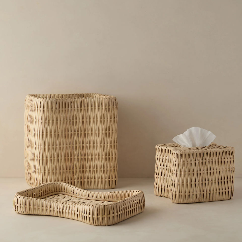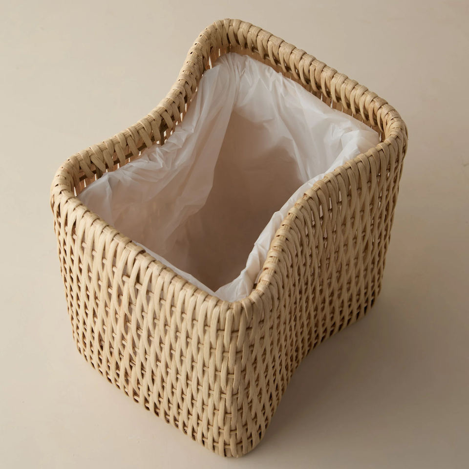 Natural Rattan Wicker Basket with Liner, Handcrafted Decorative Bin for Living Room or Office Use, OEM ODM Available