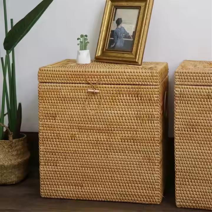 Natural Rattan Woven Rectangular Storage Baskets with Inside Handle Flexible Design Lightweight Precision-Made Imported Vietnam