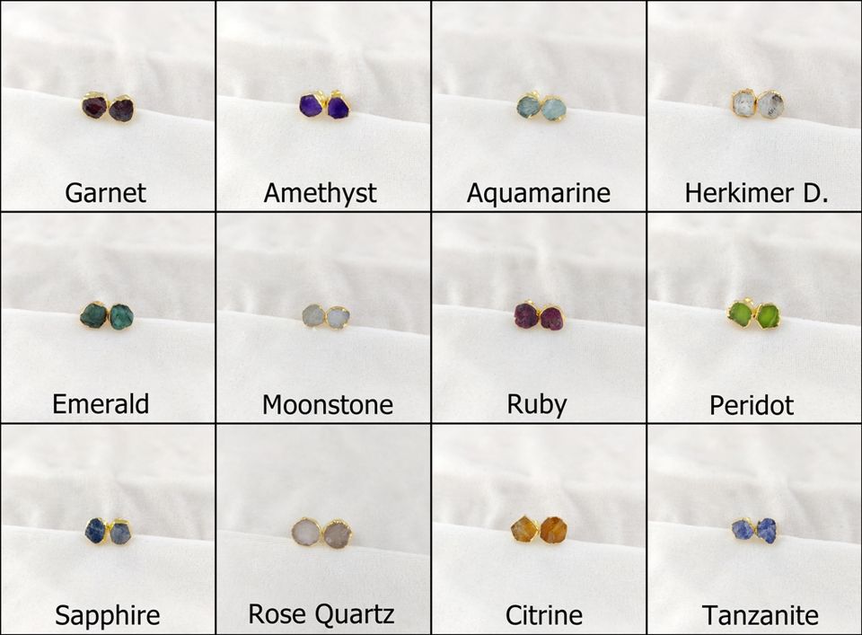 Natural Raw Aquamarine Gold Electroplated Butterfly Push Back March Birthstone Stud Earrings Birthstone Jewelry's Stone Earrings