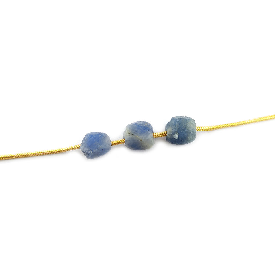 Natural Raw Blue Sapphire Gemstone Birthstone Center-Drilled Nugget Bead Set