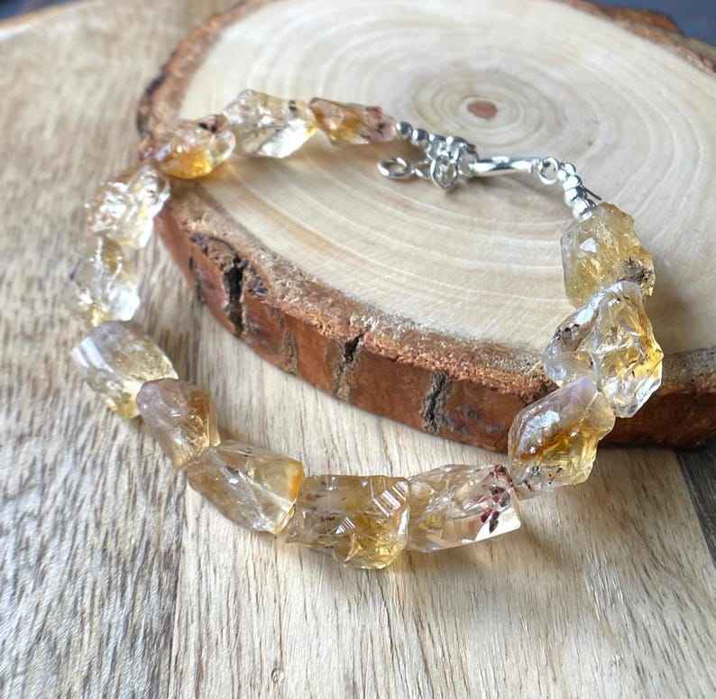 Natural Raw Citrine Rough Bracelet 925 Silver Beaded