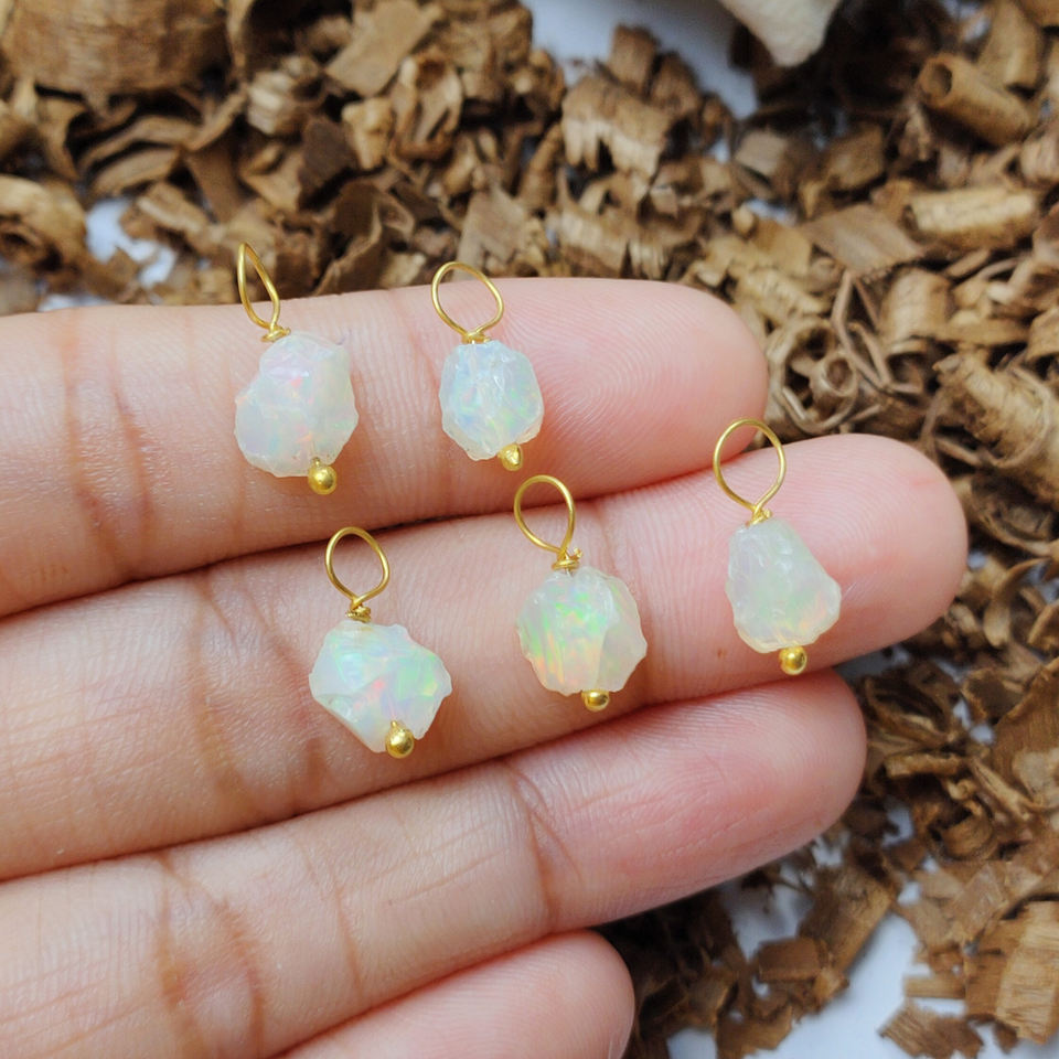 Natural Raw Ethiopian Opal Pendant Necklace Natura Raw 8-10mm Fire Opal Gold Plated 925 Sterling Silver Wire Wrapped Necklaces