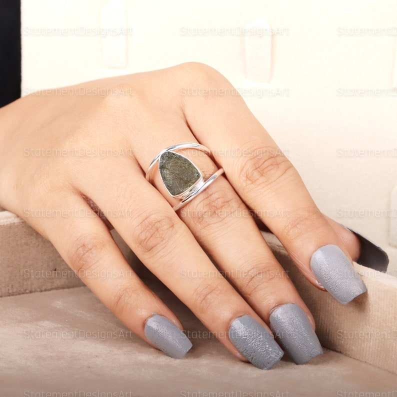 Natural Raw Moldavite Ring Crafted in 925 Solid Sterling Silver from Czech Republic for Unique Jewelry