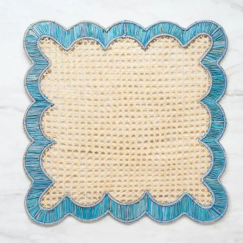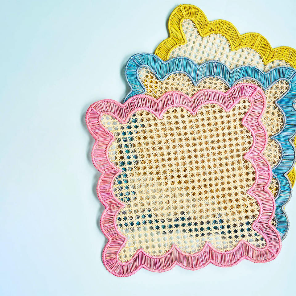 Natural Rectangular Placemat Scalloped Rattan Placemats for Dining Table Boho Rattan Charger Plates Customize from Vietnam