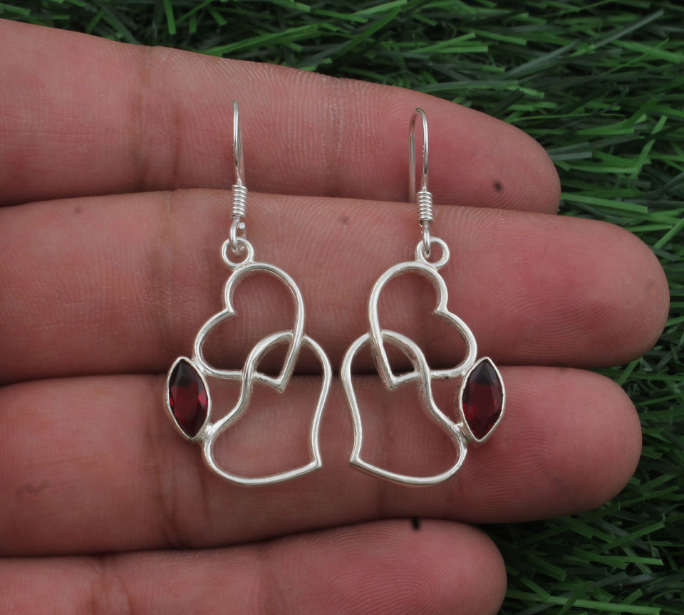 Natural Red Garnet Drop Earrings 925 Sterling Silver Luxury Dainty Wine Red Gemstone Party