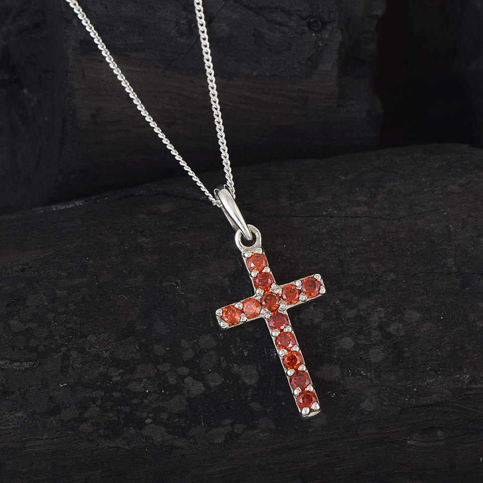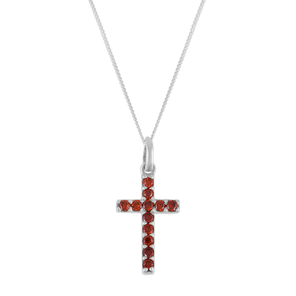 Natural Red Garnet Gemstone Cross Pendant 925 Sterling Silver 18 Inch Link Chain Necklace Fine Religious Jewelry for Unisex