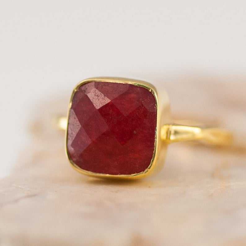 Natural Red Ruby Gold Polished 92.5 Sterling Silver Square Shape July Birthstone Beautiful Finger Band Indian Jewelry Ring