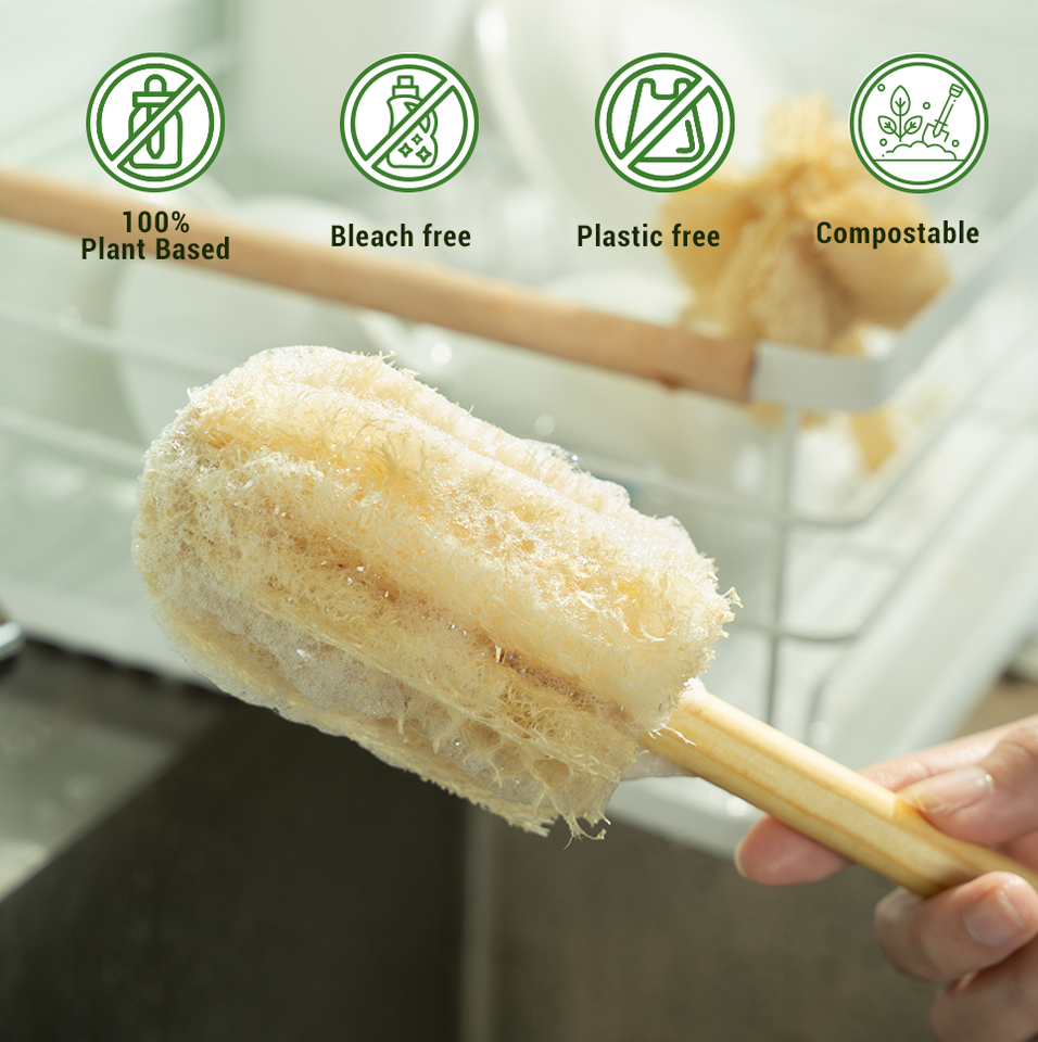 Natural Reusable Microfiber Cup Cleaner Soft Biodegradable Loofah Bottle Brush Wooden Handle Durable Dishwashing for Home Use