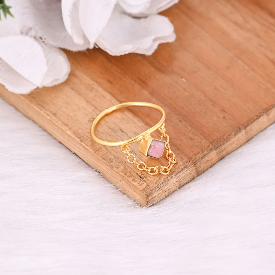 Best Selling High Quality Genuine Rhodochrosite Stone Jewelry Gold Plated 925 Sterling Silver Designer Statement Ring for Women