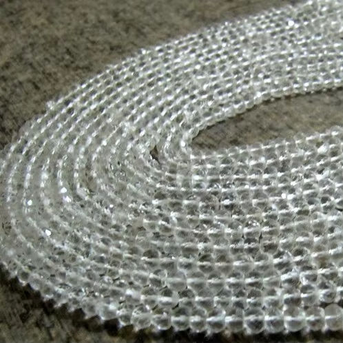 Natural Rock Crystal Rondelle Micro Faceted 4-5mm Size Beads Strand 13 inches long