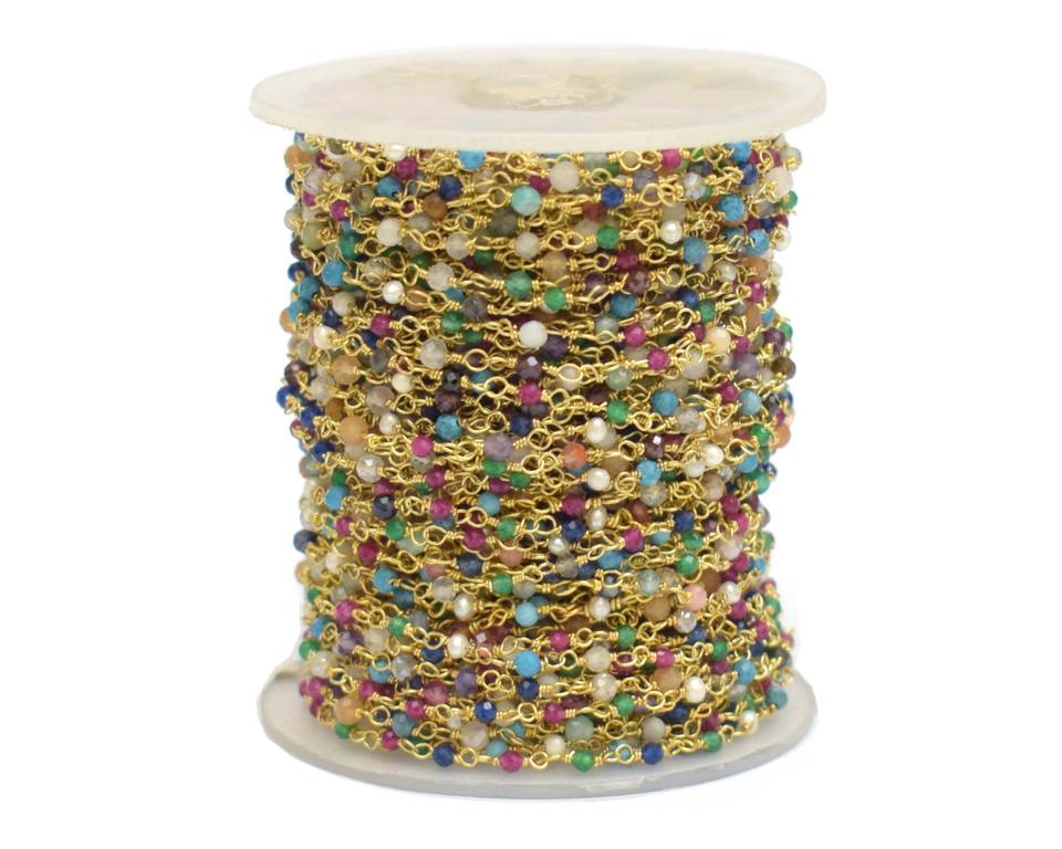 Natural Multi Gemstone Beaded Rosary ChainJewelry Name