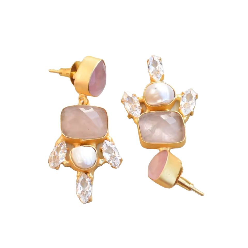 Product Name:Rose Quartz with Zircon Earrings