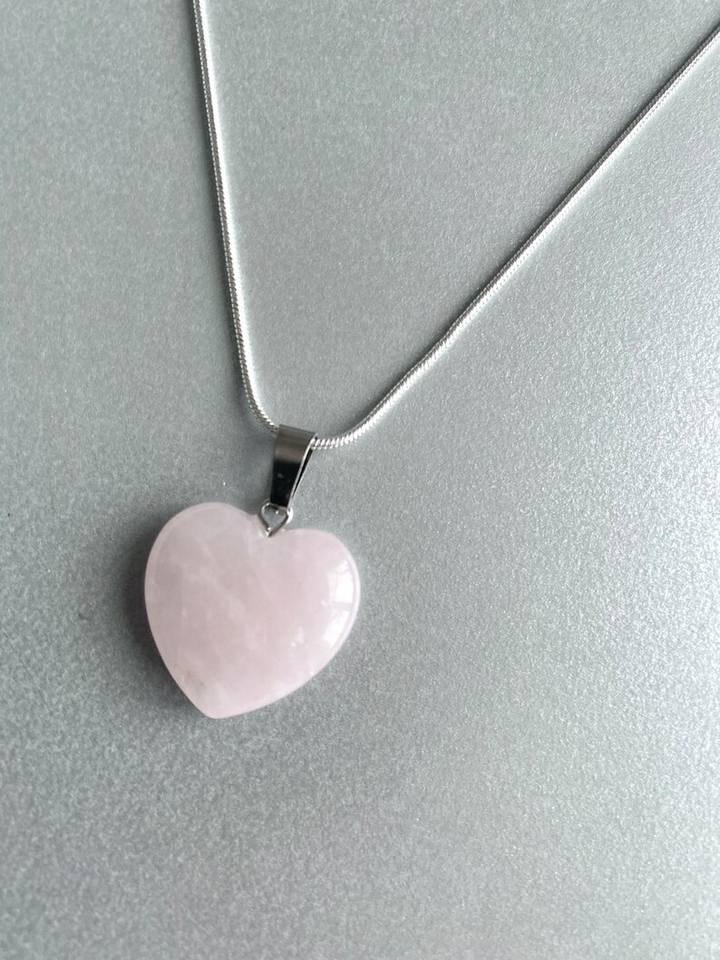 Natural Rose Quartz Elegant 18\" Long Charm Necklace Natural Rose Quartz Gemstone 92.5 Sterling Silver Smooth Heart Shape Female